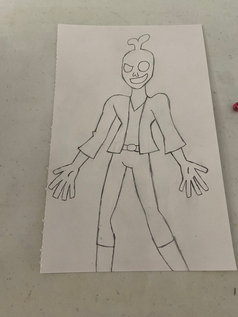 Above is a newer character named “Flipper.” This was my very first sketch of him, which I made in 2024 🙂